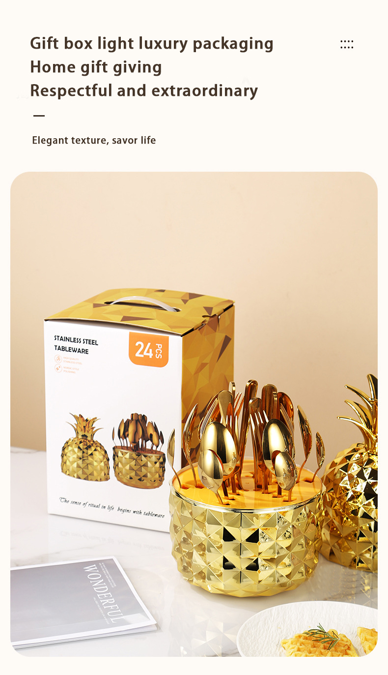 DINUO Pineapple ABS Mood Egg Stainless Steel Tableware Western Knife, Fork and Spoon Set JYDN-L-206