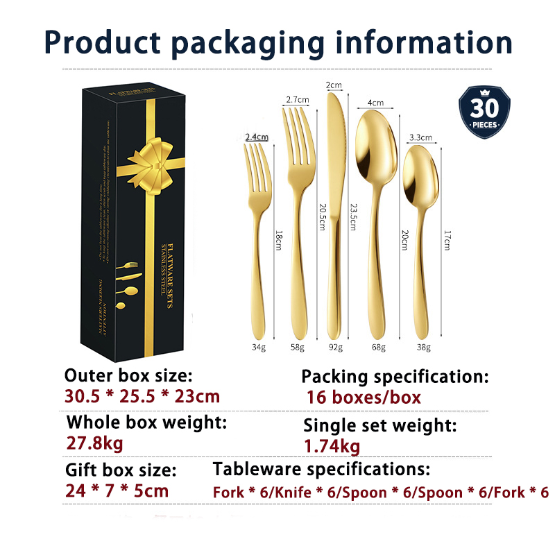 DINUO Stainless Steel 30 Piece Western style Steak Knife, Fork, Spoon Tableware Gift Box JYDN-L-209