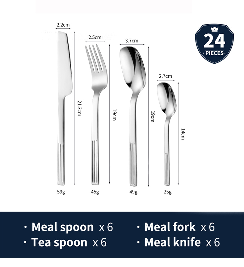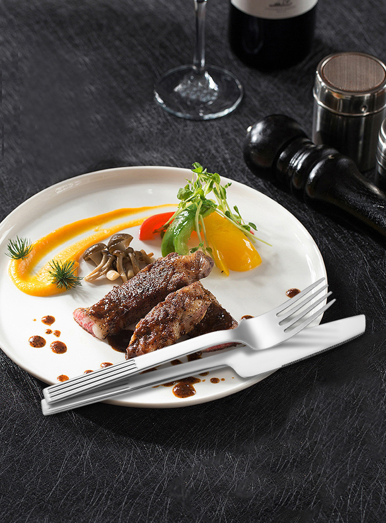 DINUO Stainless Steel 24 Piece Set Western Hotel Square Head Striped Tableware JYDN-L-210