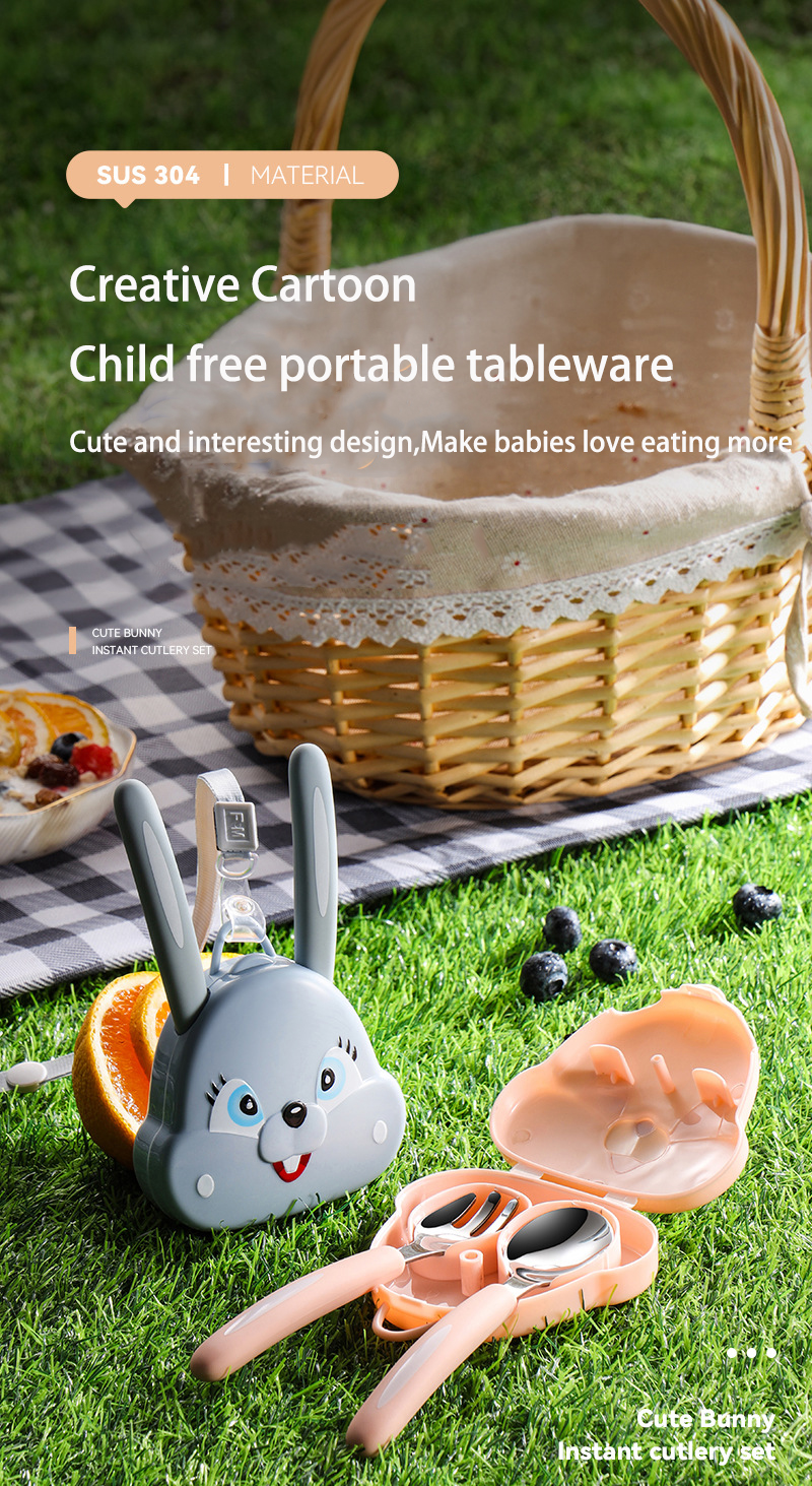 DINUO304 stainless steel rabbit portable hanging neck fork spoon cutlery set JYDN-L-223