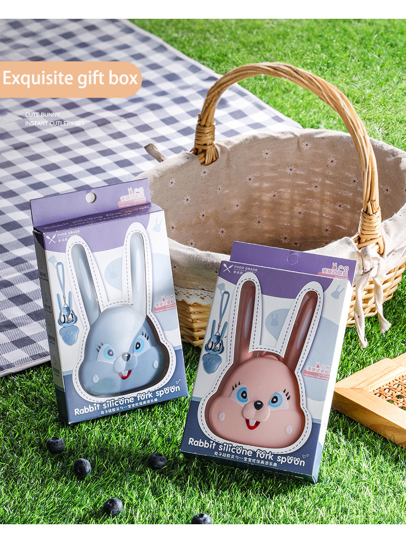 Portable rabbit spoon fork [Backed blue]
