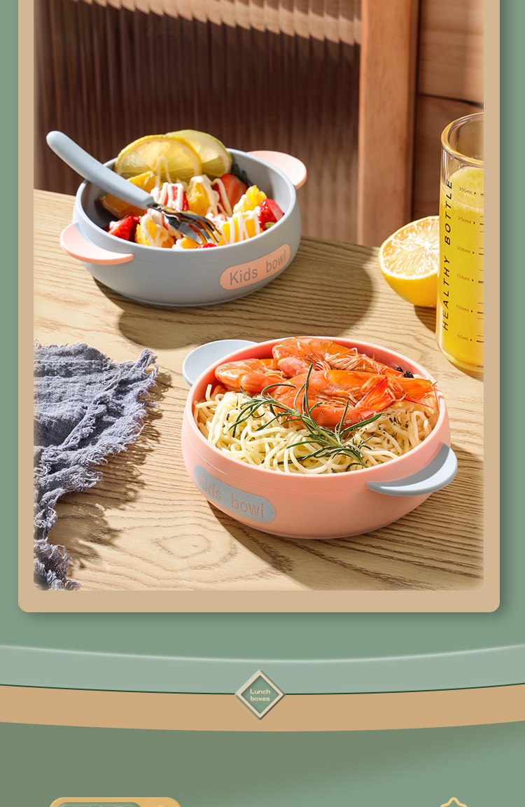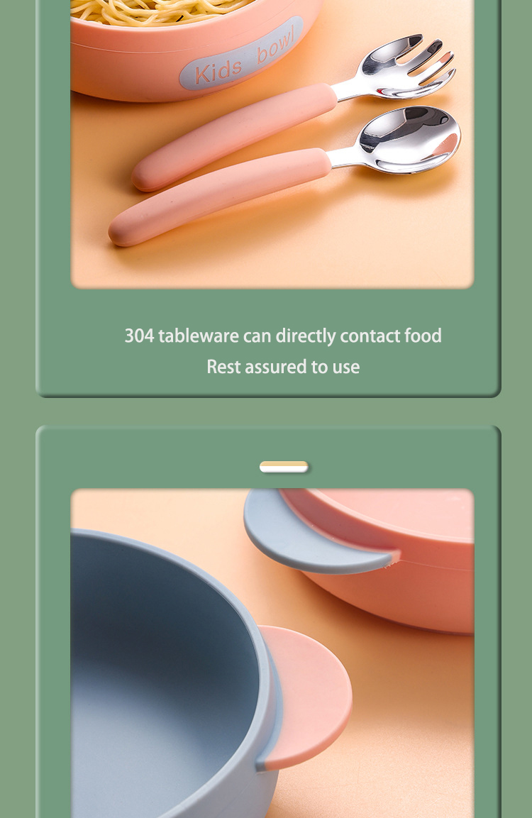 DINUO Infant Silicone Integrated Round Bowl with Fork Spoon JYDN-L-224