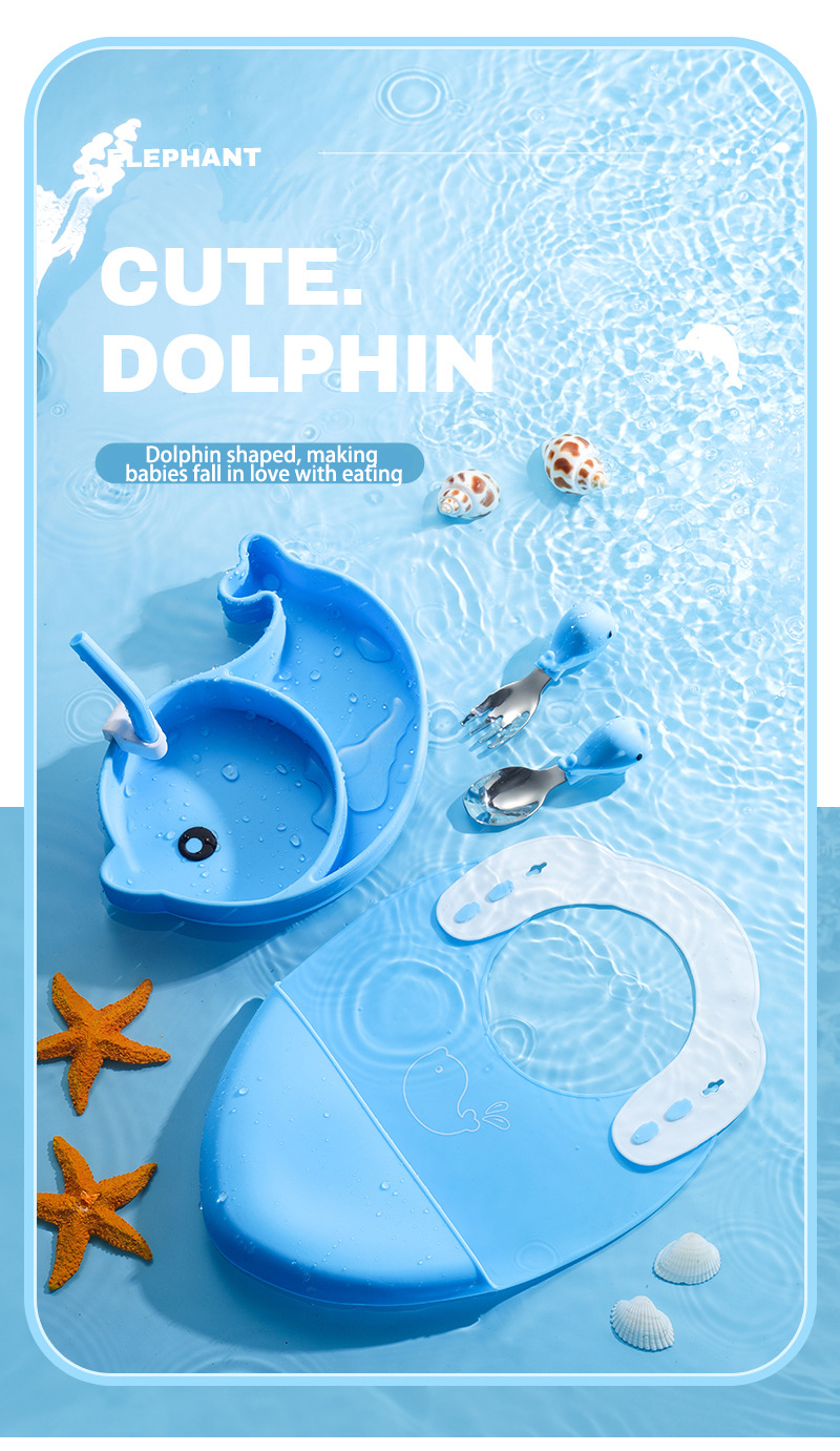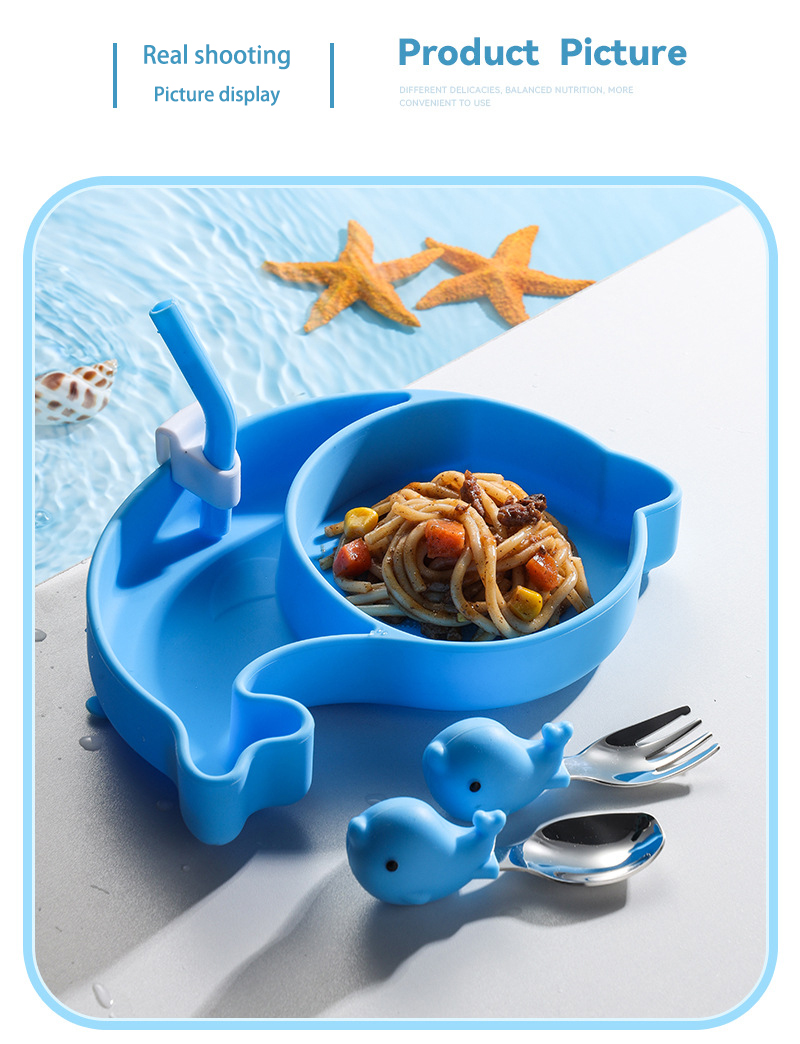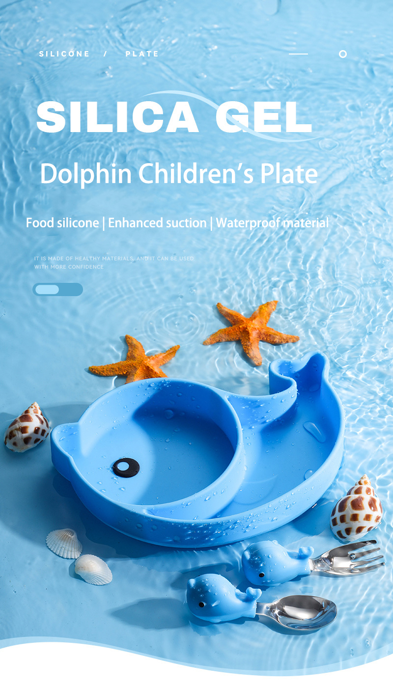 DINUO Dolphin Preschool Stainless Steel Silicone Food Plate and Tableware JYDN-L-227