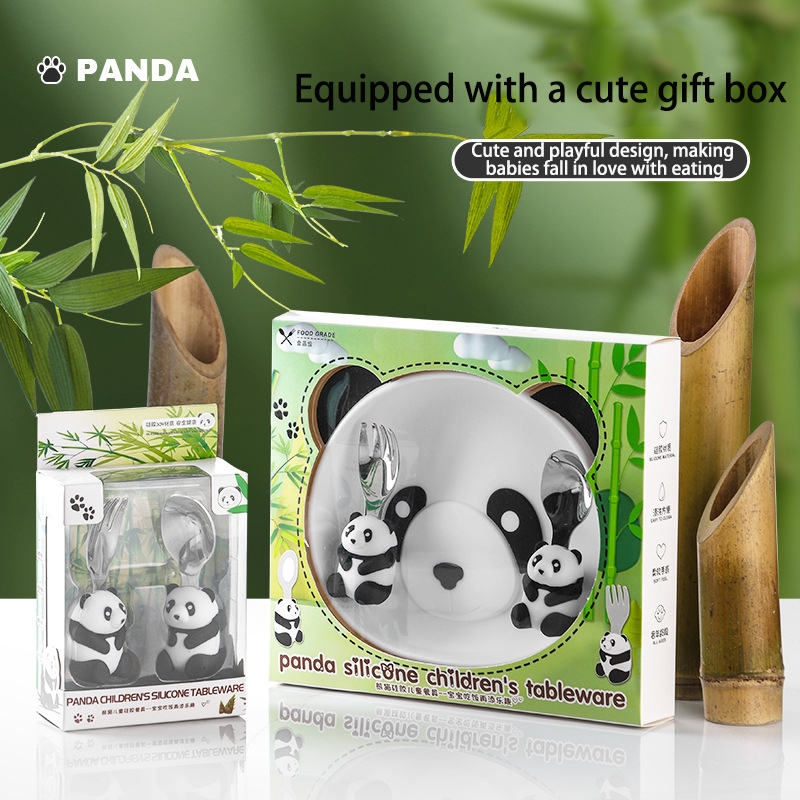 DINUO cartoon panda children silicone complementary food plate tableware JYDN-L-229