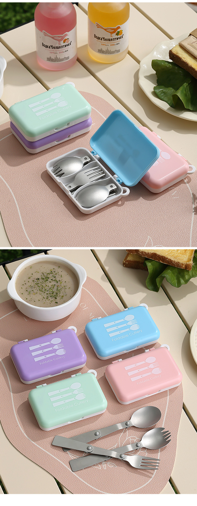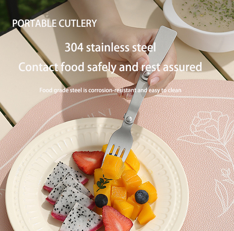 DINUO portable tableware 304 stainless steel titanium folding spoon fork set JYDN-L-241