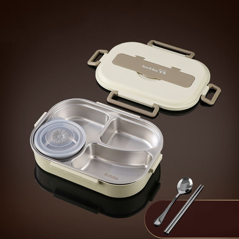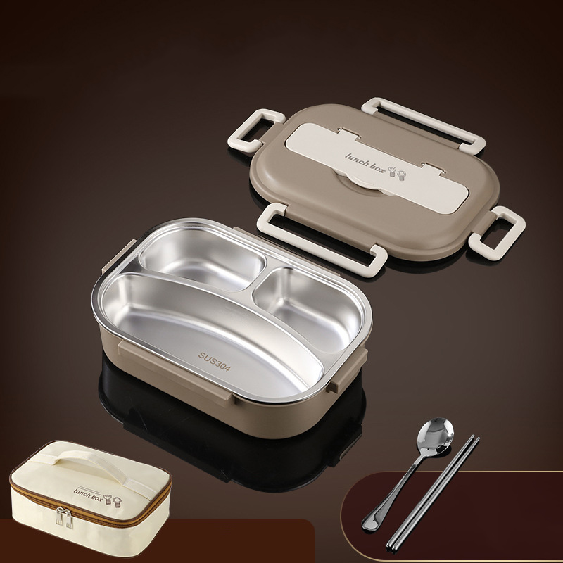 Beige three-grid 1000ml (table with tableware + insulation bag) $12