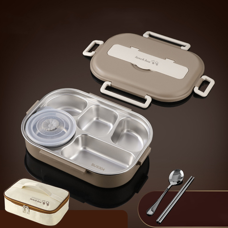 Brown four-grid 1300ml (with tableware + insulation bag) $14