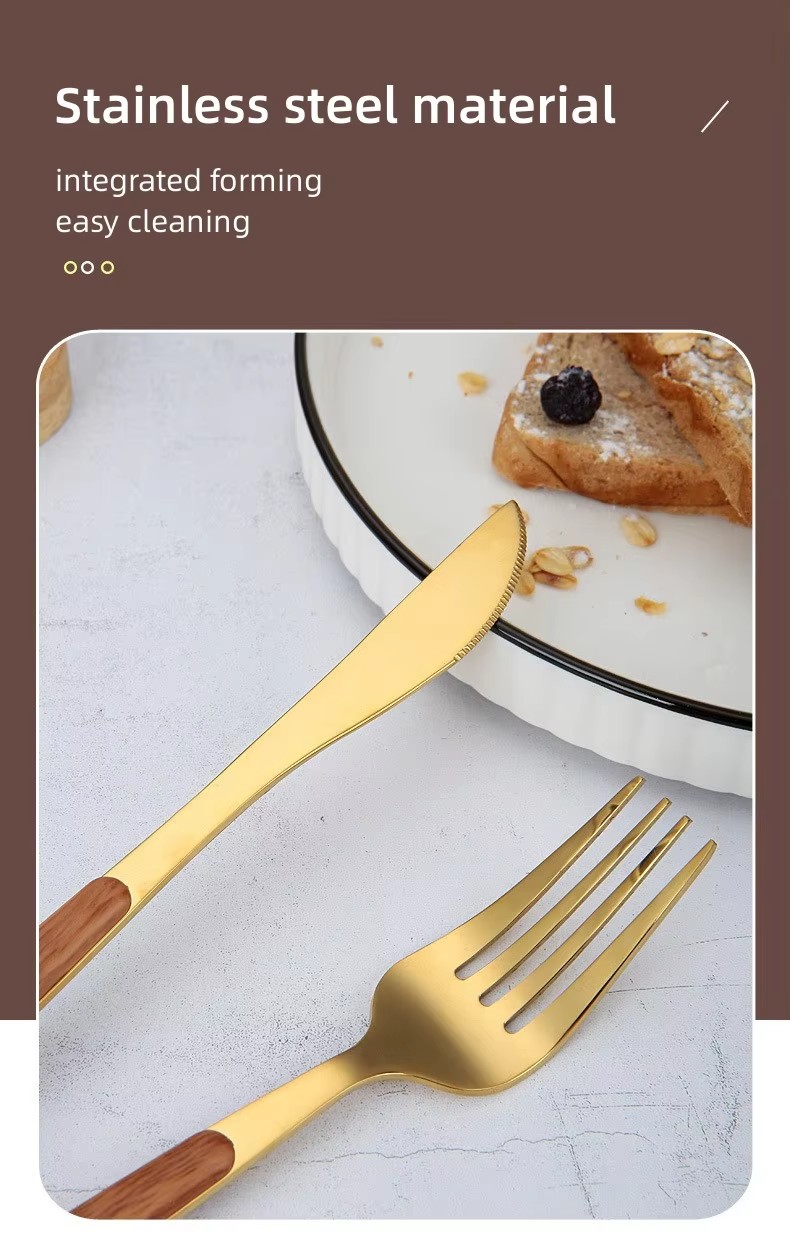 DINUO stainless steel cutlery set, fork spoon knife set, wood plastic handle JYDN-L-022