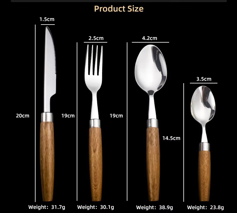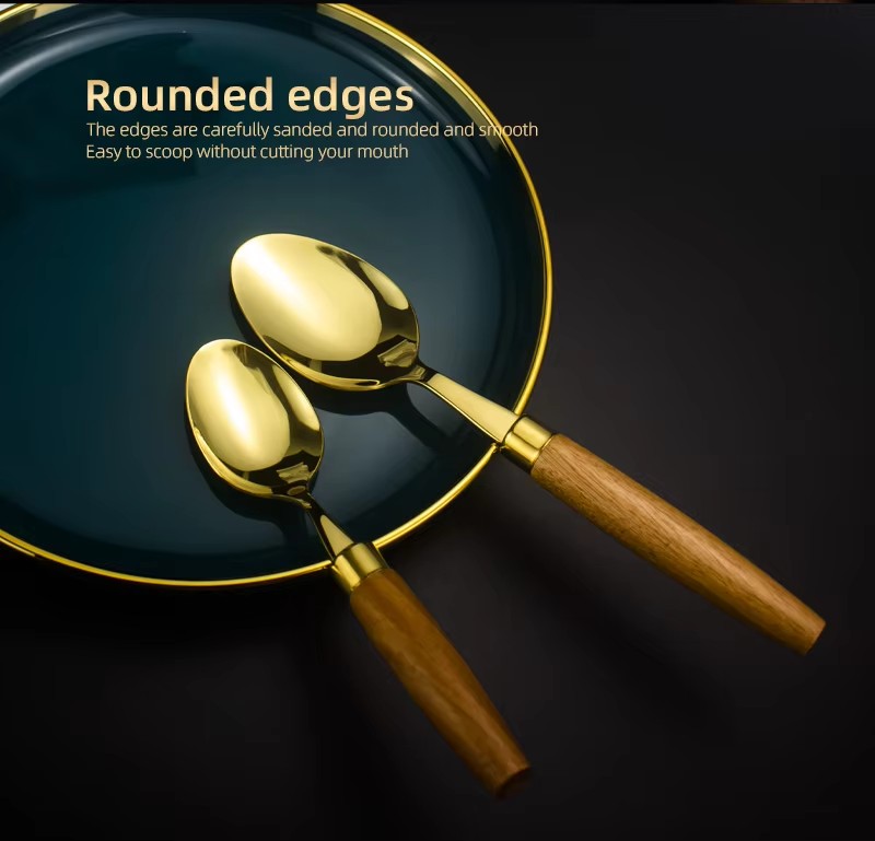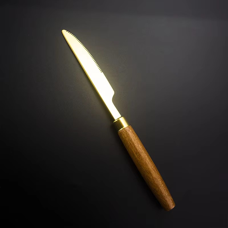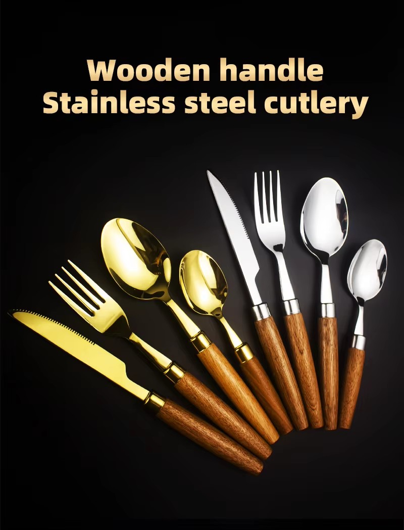 DINUOEco-friendly Wooden Handle Stainless Steel Cutlery Silver Gold Flatware SetJYDN-L-033