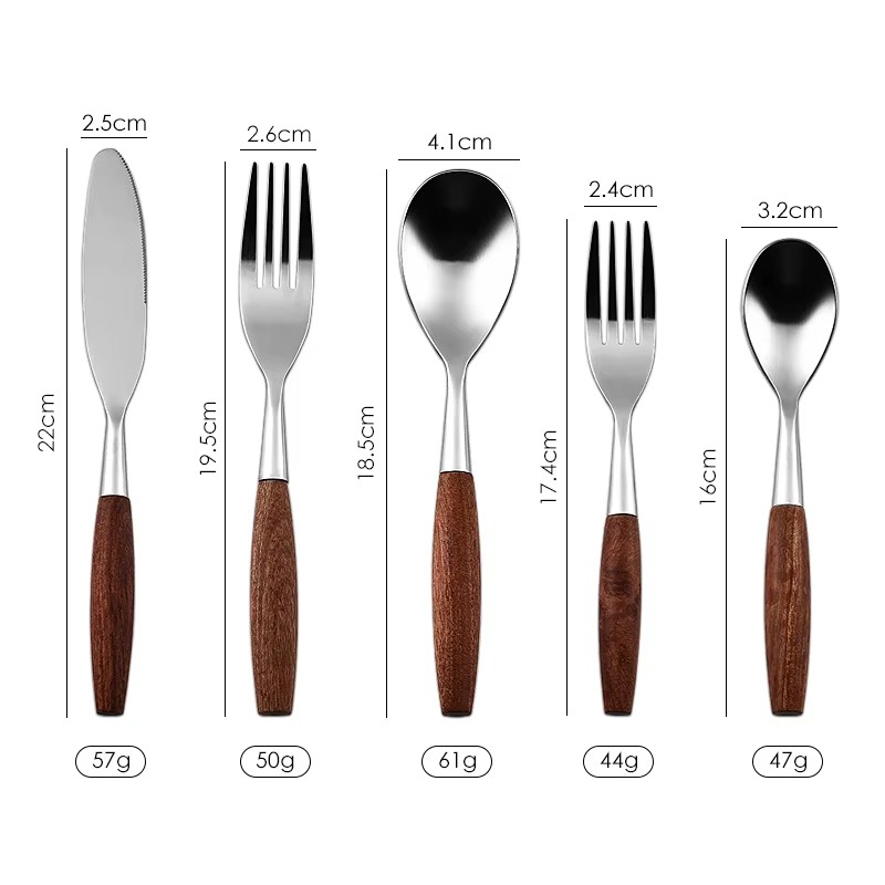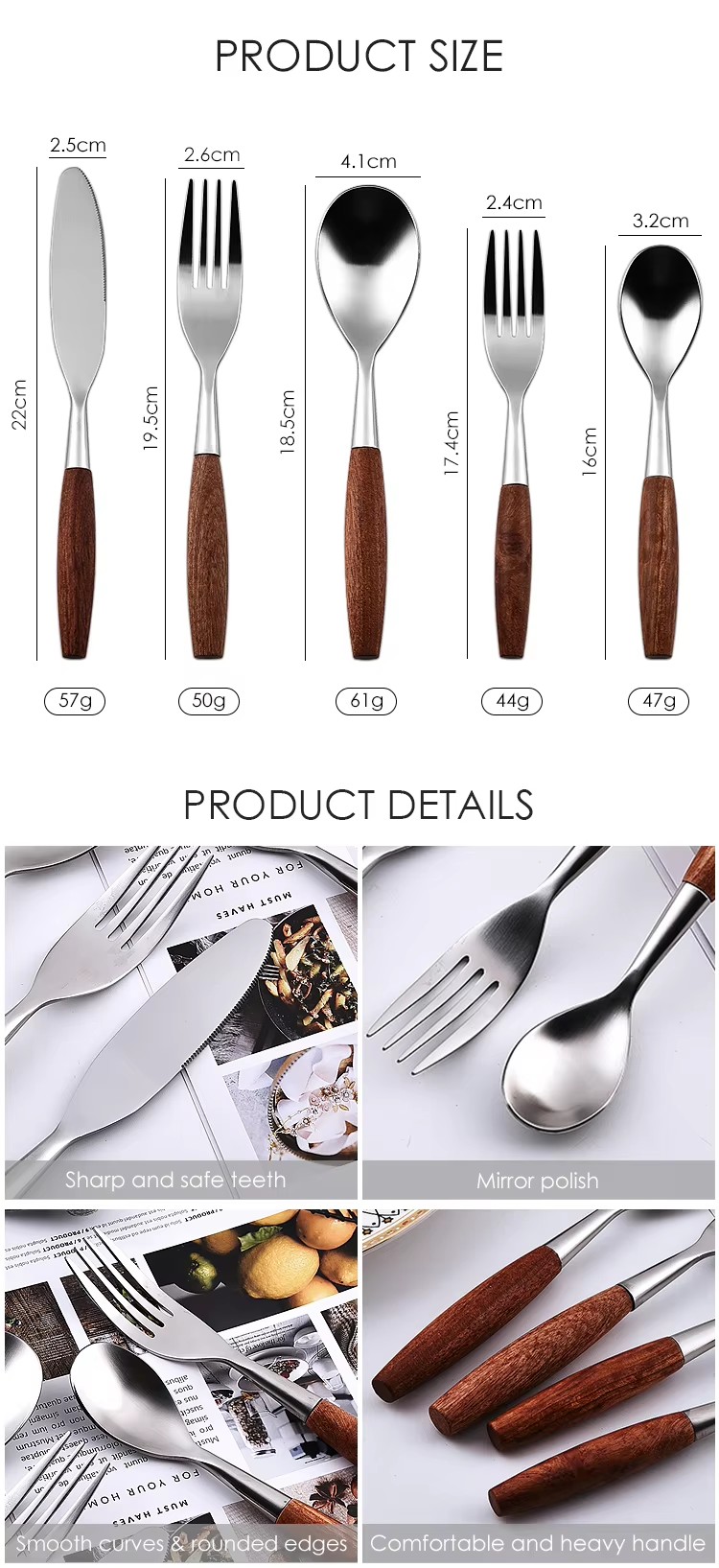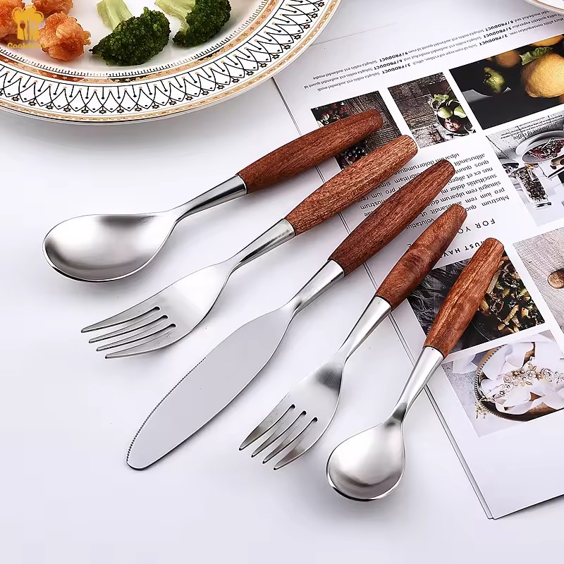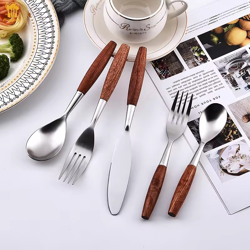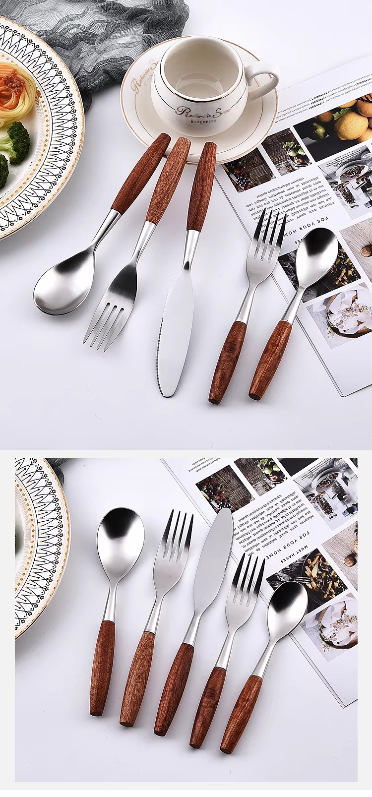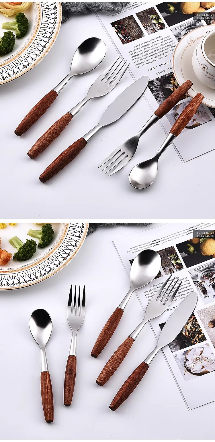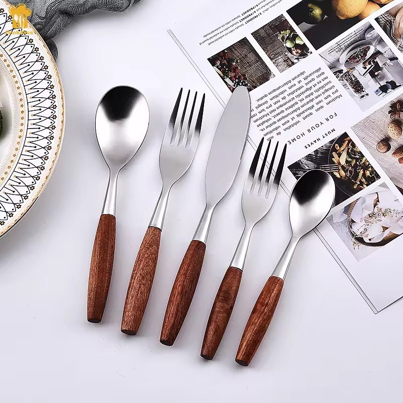 DINUO high-end wooden handle stainless steel silverware knife, fork, spoon set JYDN-L-038