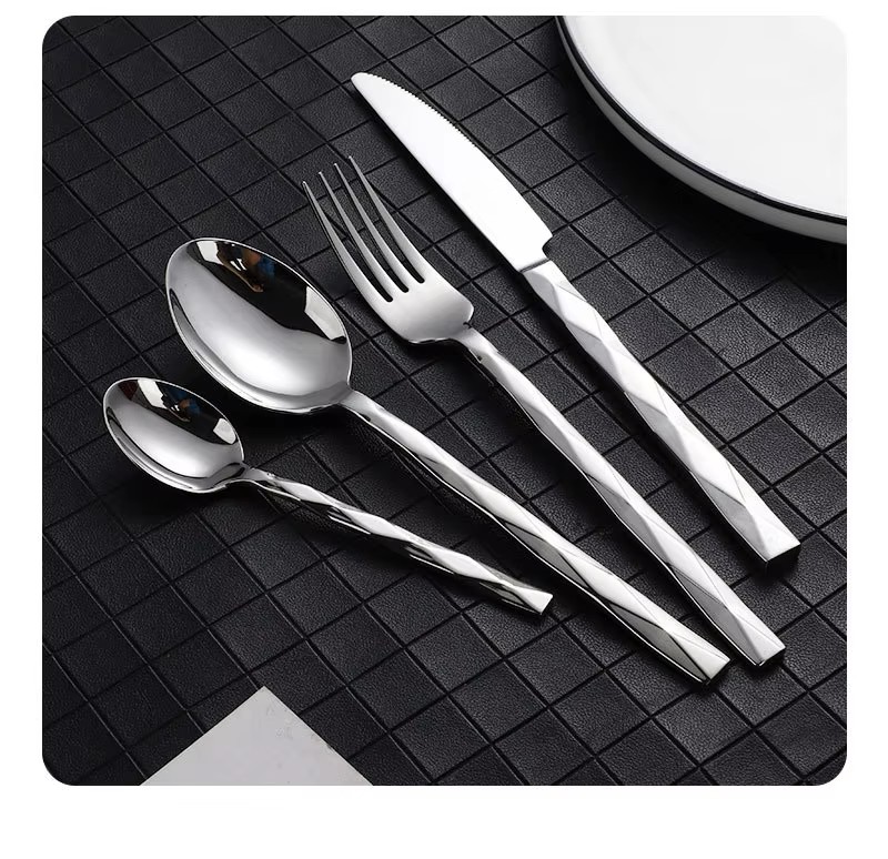 DINUO Luxury Style Stainless Steel Tableware Set Diamond shaped Handle JYDN-L-054