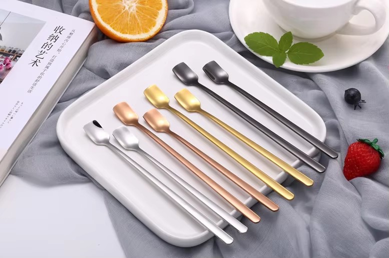 DINUO square long handled stainless steel tea dessert coffee mixing spoon JYDN-L-077